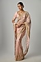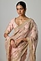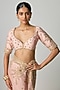 Featuring a pink saree in organza base with tikki, aari, dori and zardosi embroidery. It is paired with an embroidered blouse. Accentuate it with dangler earrings and heels for a festive occasion, cultural event, wedding or engagement ceremony.