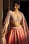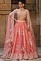 Featuring a pink lehenga in organza base with zardosi, resham and tikki embroidery, including an attached cancan. It is paired with an embroidered blouse and an embroidered dupatta. Accentuate the designer lehenga with swarovski or zircon jewellery, embellished heels and a potli bag for a bridal look, Perfect wear for your wedding or engagement ceremony.