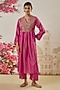 Featuring a pink kalidar kurta in silk blend base with print, sequin work, zardosi and pearl hand embroidery. It is paired with printed pants and an organza embroidered dupatta. Accentuate with statement earrings and heels for festive ceremonies.