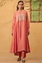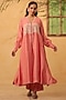Featuring a pink jacket-style kurta in silk chanderi and silk tencel base with applique, resham and pearl embroidery. It is paired with straight pants and an inner. Accentuate it with pearl drop earrings and embellished juttis for a stylish ensemble, ideal for festive gatherings, family functions or traditional celebrations.