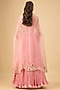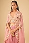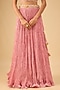 Featuring a pink crushed lehenga in silk base with embroidered waist belt and handmade tassel detail. It is paired with a blouse having threadwork, bead and cutdana embroidery, including an embroidered cape. Accentuate with statement earrings and heels for a wedding, sangeet or engagement ceremony.
