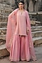 Featuring a pink kurta in silk modal base with aari, dori and pearl embroidery. It is paired with embroidered sharara and an embroidered dupatta. Style it with zircon jewellery and block heels for a wedding or sangeet ceremony.