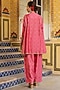 Featuring a pink kurta in silk tencel base with print, zardosi, tikki and resham embroidery. It is paired with printed salwar pants. Accentuate it with statement earrings and heels for a festive occasion, sangeet or wedding ceremony.