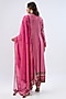 Featuring a pink angrakha in silk tencel base with front tie-up closure, beads, sequins and thread embroidery. It is paired with printed churidar pants and an embroidered dupatta having handmade tassels. Style it with statement earrings and block heels for a festive occasion, wedding or haldi ceremony.