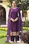 Featuring a purple kurta in chiniya silk base with applique, zardosi and tikki embroidery. It is paired with embroidered pants and a dupatta. Style with polki jewellery, soft curls and heels for festive occasions, weddings or sangeet ceremonies.