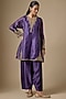 Featuring a purple short pheran kurta in organza base with zardosi, tikki, and resham embroidery. It is paired with straight pants and an inner. Style the kurta set with statement earrings and wedges for festive or wedding ceremonies.
