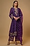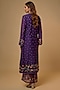 Featuring a purple kurta in silk base with floral applique motifs, 3D rose detail and resham embroidery. It is paired with palazzo pants and an organza dupatta. Accentuate it with dangler earrings and mojaris for a festive occasion or wedding ceremony.