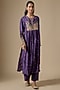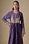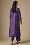 Featuring a purple frock-style kurta in silk tencel base with applique, zardosi, and tikki embroidery. It is paired with straight pants. Style the kurta set with kundan polki dangler earrings and wedges or juttis for festive or wedding ceremonies.