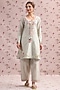 Featuring a sage green short kurta in silk chanderi base with print, beads and thread embroidery. It is paired with printed pants. Accentuate it with dangler earrings and heels for a festive occasion or pooja ceremony.