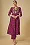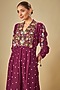 Featuring a wine frock-style kurta in silk base with tie-up sleeves, floral applique motifs, floral and resham embroidery. It is paired with narrow-fit pants. Accentuate it with statement jewellery and heels for festive occasions or sangeet ceremony.