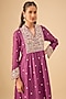 Featuring a wine kurta in silk base with dori, resham work and floral embroidery. It is paired with palazzo pants. Accentuate with statement earrings and heels for a festive occasion or pooja ceremony.