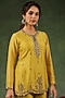 Featuring a yellow kurta in chanderi silk base with boota, tikki, pitta and zardosi embroidery. It is paired with layered sharara pants and an embellished dupatta having lace and latkans details. Accentuate it with statement earrings and heels for a festive occasion, engagement or mehendi ceremony.