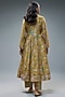 Featuring a yellow kurta in chanderi silk base with print. It is paired with pants and a dupatta. Accentuate it with jhumkas, wedges, and a clutch for a wedding or sangeet ceremony.
