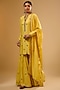 Featuring a yellow kurta in chiniya silk base with mirror, zardosi and tikki embroidery. It is paired with sharara pants and an embroidered dupatta. Accentuate it with delicate jhumkas and heels. Perfect for festive gatherings, family functions and traditional daytime events.