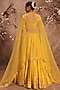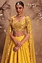 Niti Bothra presents a yellow lehenga in kora silk base with zardosi and mirror embroidery. It is paired with an embroidered blouse, dupatta and a cancan skirt. Accentuate it with diamond jewellery and heels for a bridal, engagement or a reception look.