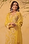 Featuring a yellow kurta in organza and silk tencel base with applique, resham and pearl embroidery. It is paired with an inner, a dupatta and straight pants. Accentuate it with dangler earrings and wedges, perfect for festive occasion, pooja ceremony or family gathering.
