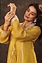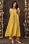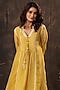 Featuring a yellow kurta in silk chanderi and silk tencel base with applique embroidery, pintuck and tie-up detailing. It is paired with straight pants and an inner. Accentuate it with pearl drop earrings and embellished juttis for a stylish ensemble, ideal for festive gatherings, haldi functions or traditional celebrations.