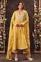 Yellow Silk Chanderi Applique & Resham Embroidered Kalidar Kurta Set