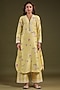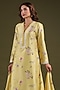 Featuring a yellow kurta in silk chanderi base with print, mirror and thread embroidery. It is paired with printed and embroidered pants. Accentuate it with dangler earrings and heels for a festive occasion or pooja ceremony.