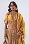 Featuring a yellow lehenga in silk chanderi base with print, beads, sequins and thread embroidery. It is paired with a blouse and a printed dupatta having handmade tassels. Style it with statement jewellery and heels for a wedding, sangeet or haldi ceremony.