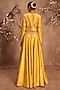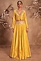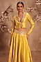 Niti Bothra presents a yellow lehenga in silk base with mirror embroidery. It is paired with an embroidered jacket. Accentuate it with diamond jewellery and heels for a bridal, engagement or a reception look.