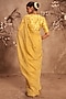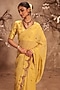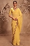 Niti Bothra presents a yellow saree in tissue base with tikki and zardosi embroidery. It is paired with a blouse and an underskirt. Accentuate it with statement jewellery and heels for a festive occasion.