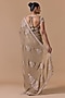 Beige Lurex Chiffon Crystal Embroidered Saree Set