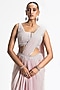Nitika Gujral presents a mesmerizing blush pink ombre draped saree in satin base. It is paired with a net blouse having sequins, beads and crystal embroidery. Style this designer saree set with dangler earrings and heels for a wedding or engagement ceremony, showcasing style and sophistication.