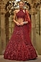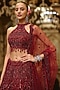 Nitika Gujral presents a burgundy lehenga in net base with cutdana, beads and sequins embellishments. It is paired with a blouse and a dupatta. Elevate the lehenga with diamond jewellery, stilettos, finished with a richly embellished clutch. Perfect for the cocktail soirees, grand entrance, or a sangeet ceremony.