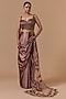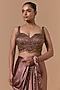 Copper Satin Crystal Embroidered Pre-Draped Saree Set
