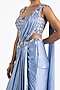 Ink Blue Satin & Organza Pre-Draped Saree Set