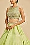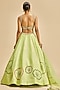 Nitika Gujral presents lime green lehenga in raw silk base with floral applique, resham, beads, and crystal embroidery. It is paired with a matching embroidered blouse and a net dupatta. Accentuate with statement jewellery and heels for a wedding or an engagement ceremony.