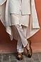 Featuring an ivory sherwani in raw silk base with resham, cutdana and bead embroidery. It is paired with a matching monga tussar kurta and cotton lycra pants. This contains only three pieces.
