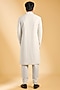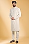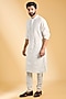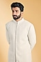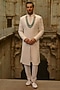 Featuring an ivory sherwani in raw silk base with resham, dabka and beads embroidery. It is paired with a cotton silk kurta and churidar pants. Style it with mojaris for a wedding, sangeet or engagement ceremony.