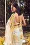 Featuring an off-white saree in organza base with 3D motifs, beads, cutdana, pearl and applique embroidery. It is paired with a contrasting blouse and a satin lycra petticoat. Accentuate this set with statement jewellery and heels for a wedding or cocktail ceremony.