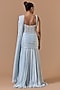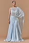 Powder Blue Satin Embroidered Pre-Draped Gown Saree Set