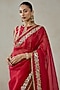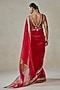 Nitika Gujral features a red saree in organza, satin and brocade base with motif embroidery. It is paired a blouse and an underskirt. Accentuate it with meenakari earrings, a potli bag and block heels for a sangeet, cocktail or engagement ceremony.