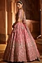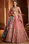 Nitika Gujral presents rose pink lehenga in organza base with resham, gota, beadwork and dori embroidery. It is paired with a matching blouse and a dupatta. Accentuate this lehenga set with polki jewellery and heels for a complete bridal look.
