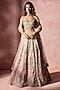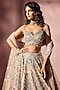 Nitika Gujral presents an exquisite Rose Pink Ombre Lehenga crafted in a net and satin base, adorned with intricate kasab, mirror, beads and sequins embroidery. It is paired with a finely embroidered blouse and an organza embroidered dupatta. Elevate this designer ensemble with zircon jewellery, a floral hairdo, and embellished block heels for a striking bridal look, perfect for destination weddings, engagements, or sangeet ceremonies.