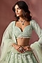 Sea Green Net Beads & Sequins Embroidered Lehenga Set