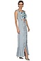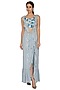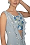 Featuring a dusky blue draped skirt in a crepe base. It is paired with a matching floral printed crop top and frill long jacket having embroidery.