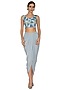 Dusky Blue Draped Skirt With Crop Top & Embroidered Jacket