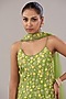 Featuring a green kurta in silk base with mirror, cutdana, sequins, nakshi and resham detailing. It is paired with georgette gharara pants having motifs detailing and a choker dupatta. Perfect wear for festive occasions.