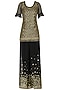 Featuring a black sharara in georgette base with gold metal flowers, sequins and dabka hand work finished with zari machine embroidery on the borders. It is paired with matching tunic with embroidery all over and tassel embellishment at the hem and frill on the sleeves and neckline, the dupatta has black and white stripes with matching borders.