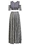 Blue and Beige Printed Cutout Crop Top and High Waisted Skirt Set