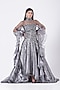 Featuring a grey lehenga in organza tissue base with fish-cut. It is paired with a matching sequins embroidered blouse and a ruffled dupatta.