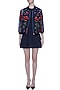 Featuring a navy bomber jacket in organza with rose and pearl embroidery with ribbed edging.