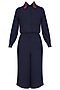 This set features a navy shirt in textured crepe with flapped placket and floral embroidered collar. It comes along with navy culottes in crepe.