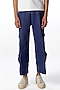 Featuring indigo trousers in linen and cotton base with seam pockets.