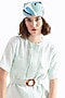 Featuring a baby blue shirt dress in linen base with raw edge detailing. It is paired with a matching with a vintage belt.
